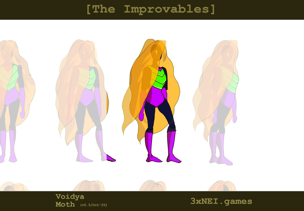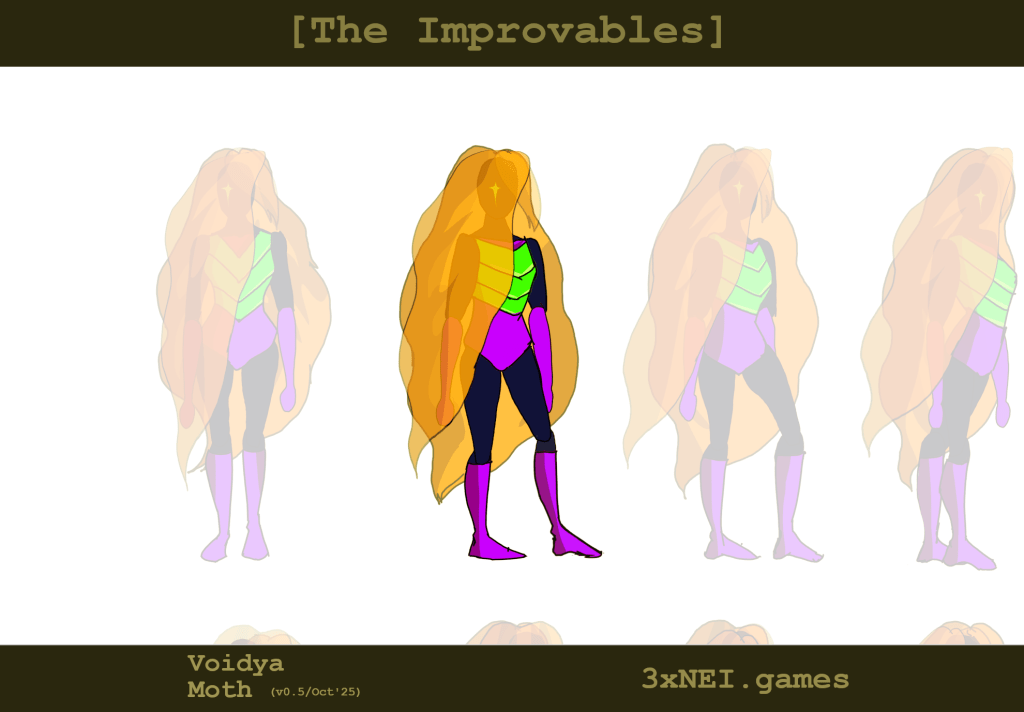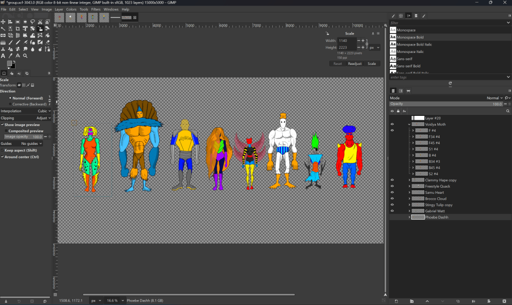 The Roster is ready to animate. I’ll be doing this through my nested layer group method, directly on GIMP. Progress videos coming up in the next few days.